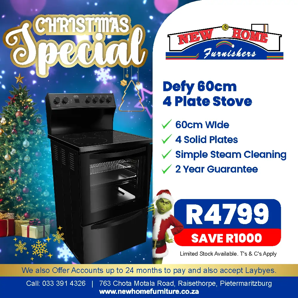 Defy 60cm 4 Plate Electric Stove with Thermofan+ – Black – DSS 697