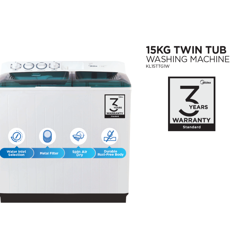 Midea 15kg Twin Tub Washing Machine – KL15TTG1W