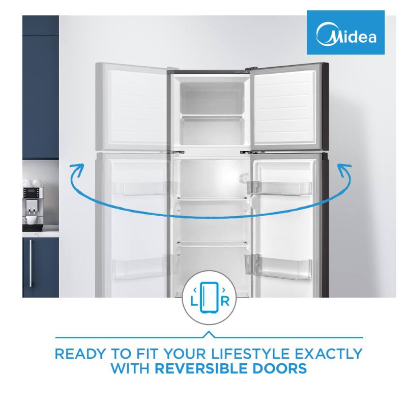 Upgrade your kitchen with the Midea 173L Top Freezer Bottom Fridge in Silver, designed to deliver modern style and everyday functionality. Featuring a fruit and vegetable crisper, adjustable legs, reversible doors, and a 2L bottle rack, it keeps your kitchen organised and efficient. The LED lighting and specialised evaporator technology provide enhanced cooling performance, making this fridge a reliable, practical, and stylish solution for all your daily storage needs.