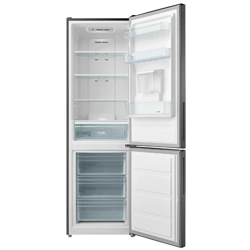 The Midea 302L Bottom Mount Freezer with Water Dispenser is designed for modern households that require generous storage capacity, reliable cooling performance, and everyday convenience. The bottom-mount configuration places fresh food at eye level while frozen items are neatly organised below for easy access. Featuring frost-free technology, an integrated manual water dispenser, and an energy-efficient cooling system, this model delivers consistent temperature control with minimal maintenance. Its clean silver finish and practical internal layout make it well suited to contemporary kitchens and family living spaces.